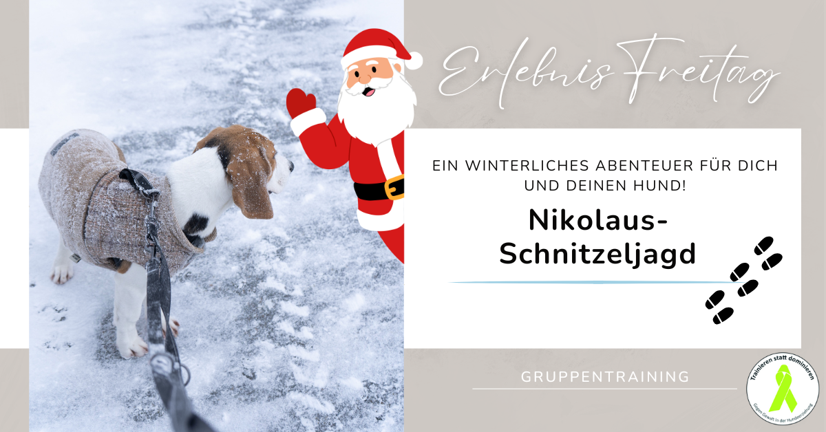 Am Freitag, den 5. Dezember, wird’s spannend: Bei unserer Nikolaus-Schnitzeljagd warten kleine Überraschungen, knifflige Aufgaben und jede Menge Spaß auf euch! Gemeinsam mit deinem Hund begibst du dich auf eine winterliche Entdeckungstour – mit weihnachtlichem Flair, Teamgeist und vielleicht einem Hauch von Zauberei …